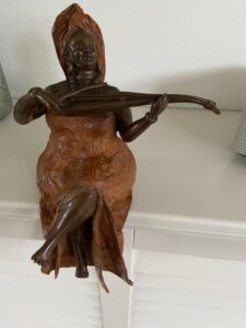 And another satisfied customer! Some time ago we were contacted by a lady who came across one of our statues on auction site Catawiki, but she didn’t get it! If it was possible that Adama Gandema, one of our artists in Burkina Faso, could make it for her? Surely; Madame Violiniste is now in full glory in her house showing off!